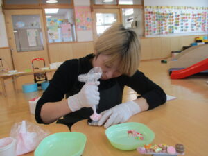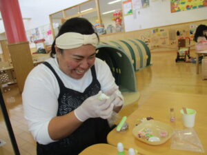 11月の母親講座は「ホイップデコでマグネットづくり」でした。見た目に可愛らしいので、久しぶりに人気の講座となりました。楽しかったことはお母さん達の顔を見てもらえば・・・( *´艸`)